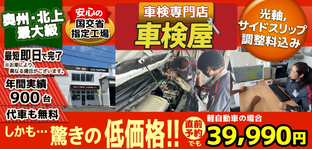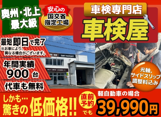 奥州 平泉 一関 金ケ崎の格安車検4.0万!車検年9百台